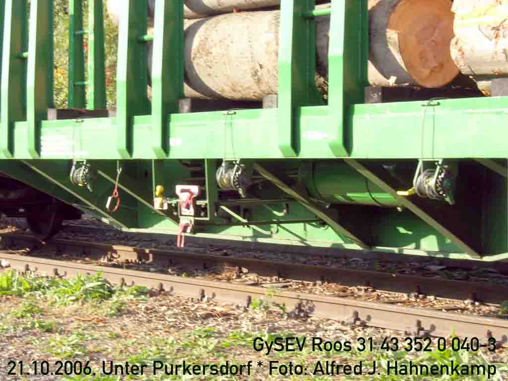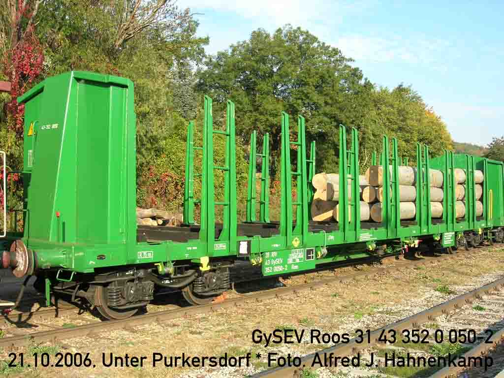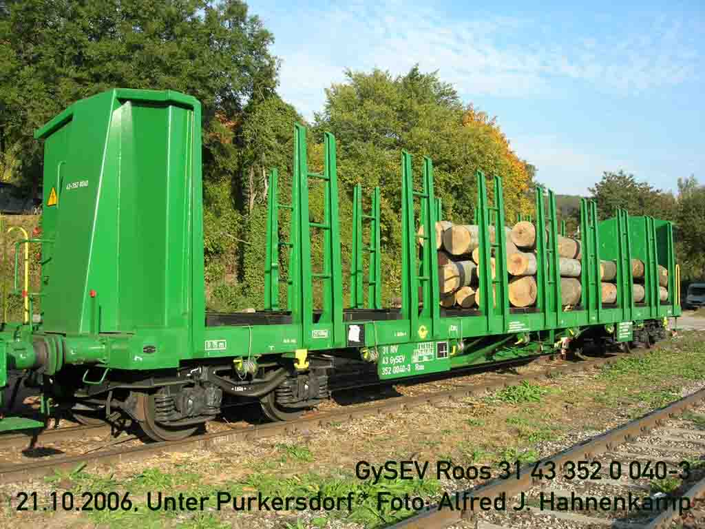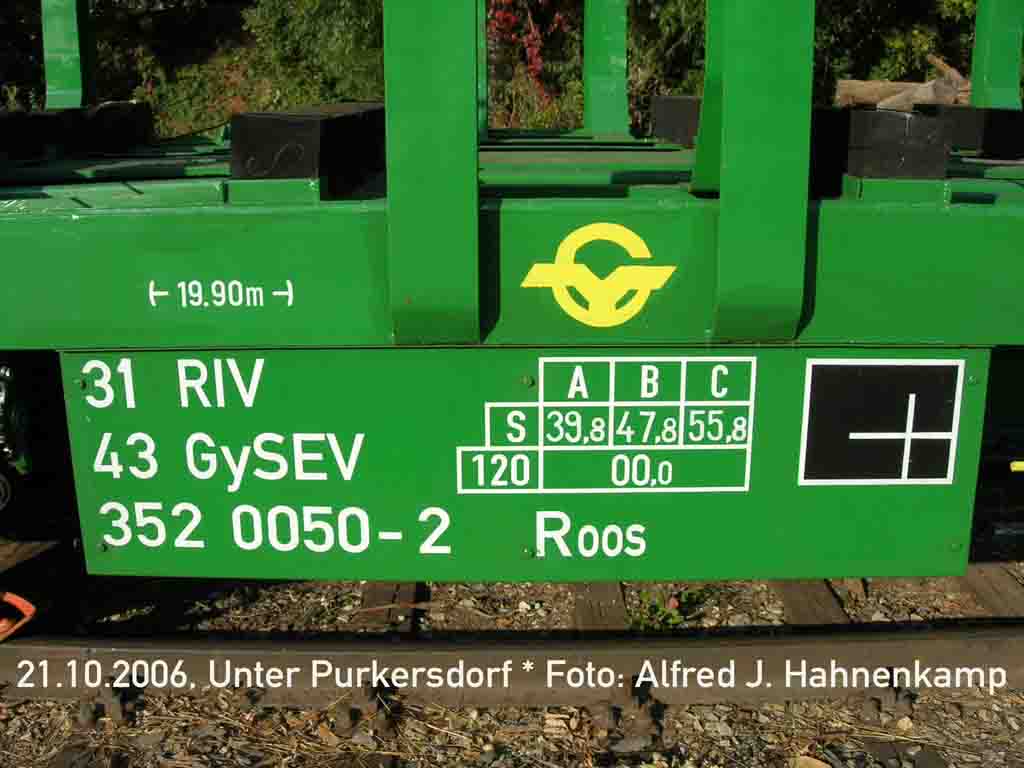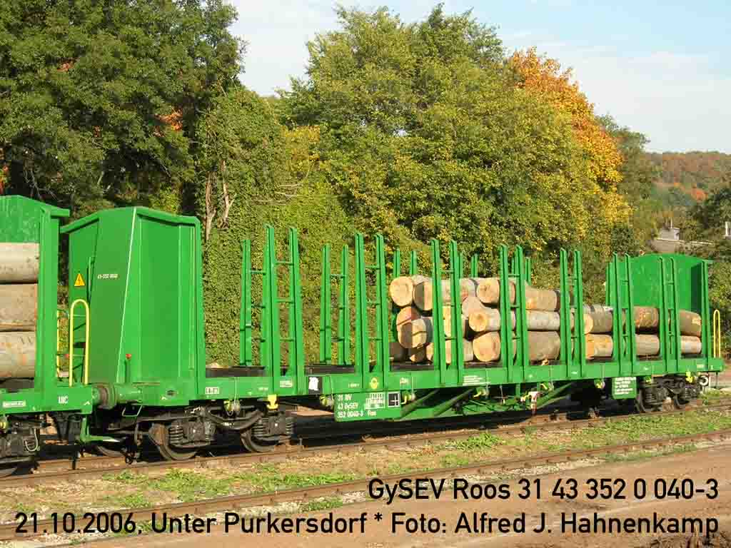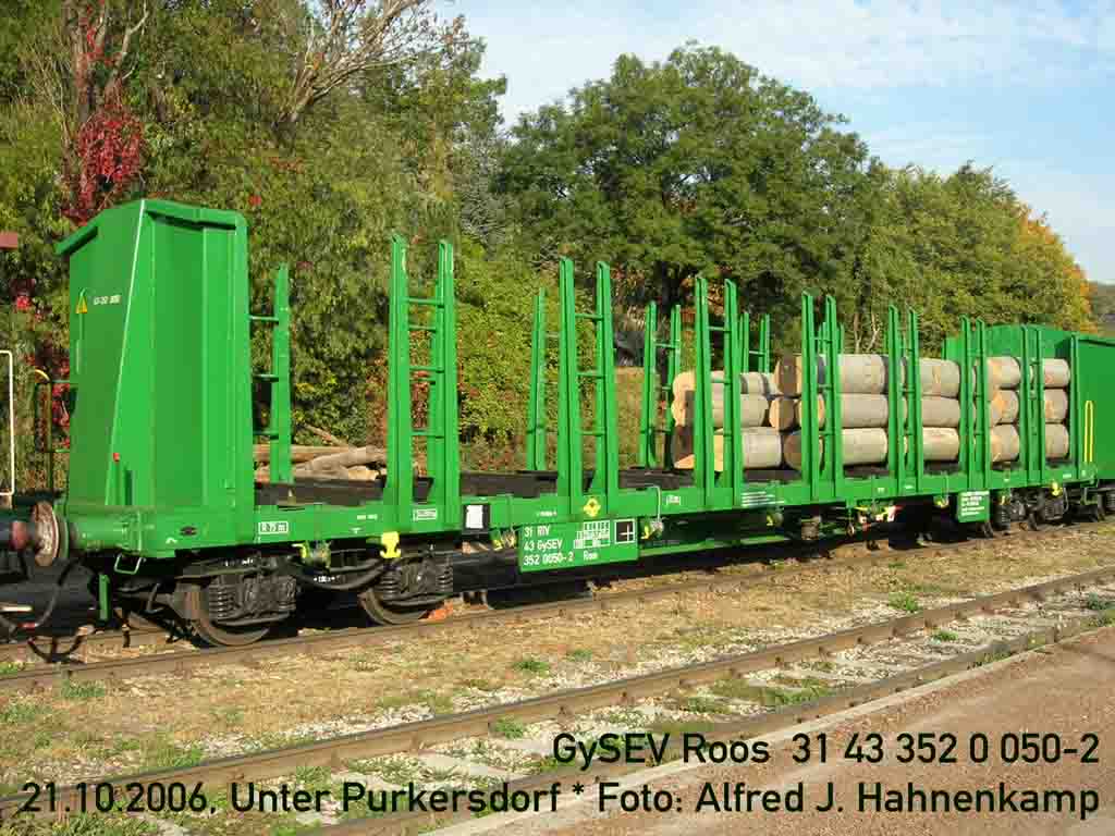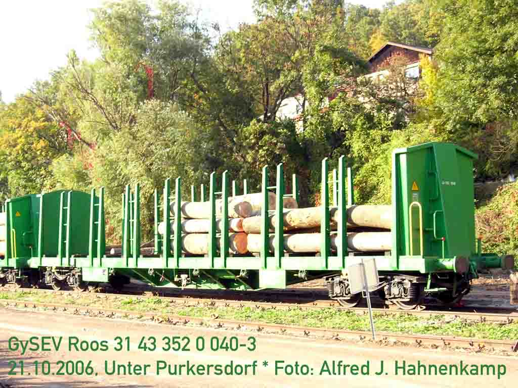 Seit einiger Zeit sind neue Holzwagen des Typs "Roos" in Unter Purkersdorf anzutreffen: Sie gehören der GySEV udn wurden in Rumänien gebaut. Bislang höchste, gesichtete Ordnungsnummer: #050.