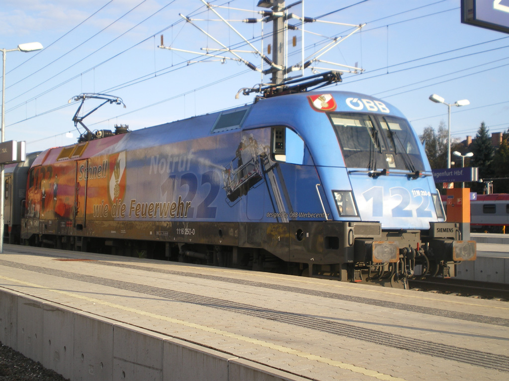 - 1116 250-0 Feuerwehr mit EC33 Allegro Stradivari gesehen in Klagenfurt Hbf