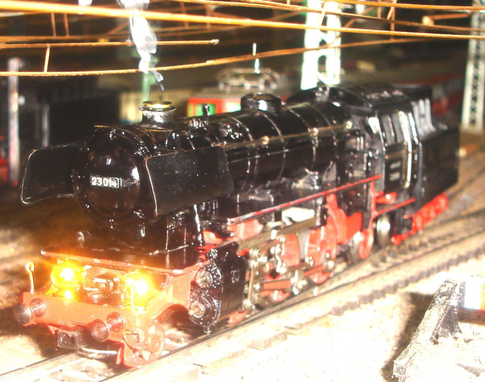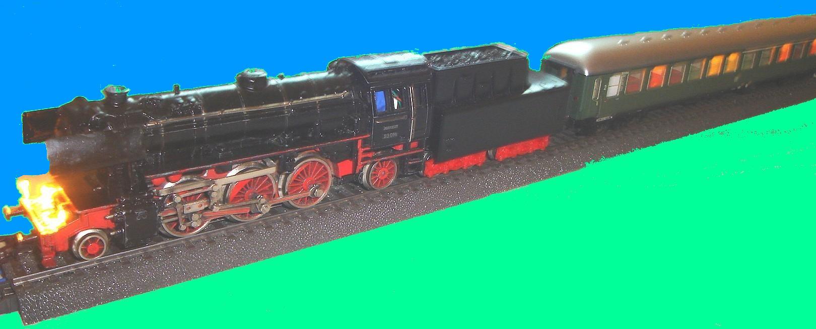 Das photo unten ist von einer umgebauten BR 23 (60903) mit eingesetzten Rauchsatz, led's vorne & hinten, Roco 4 pin elektrische kupplungen.