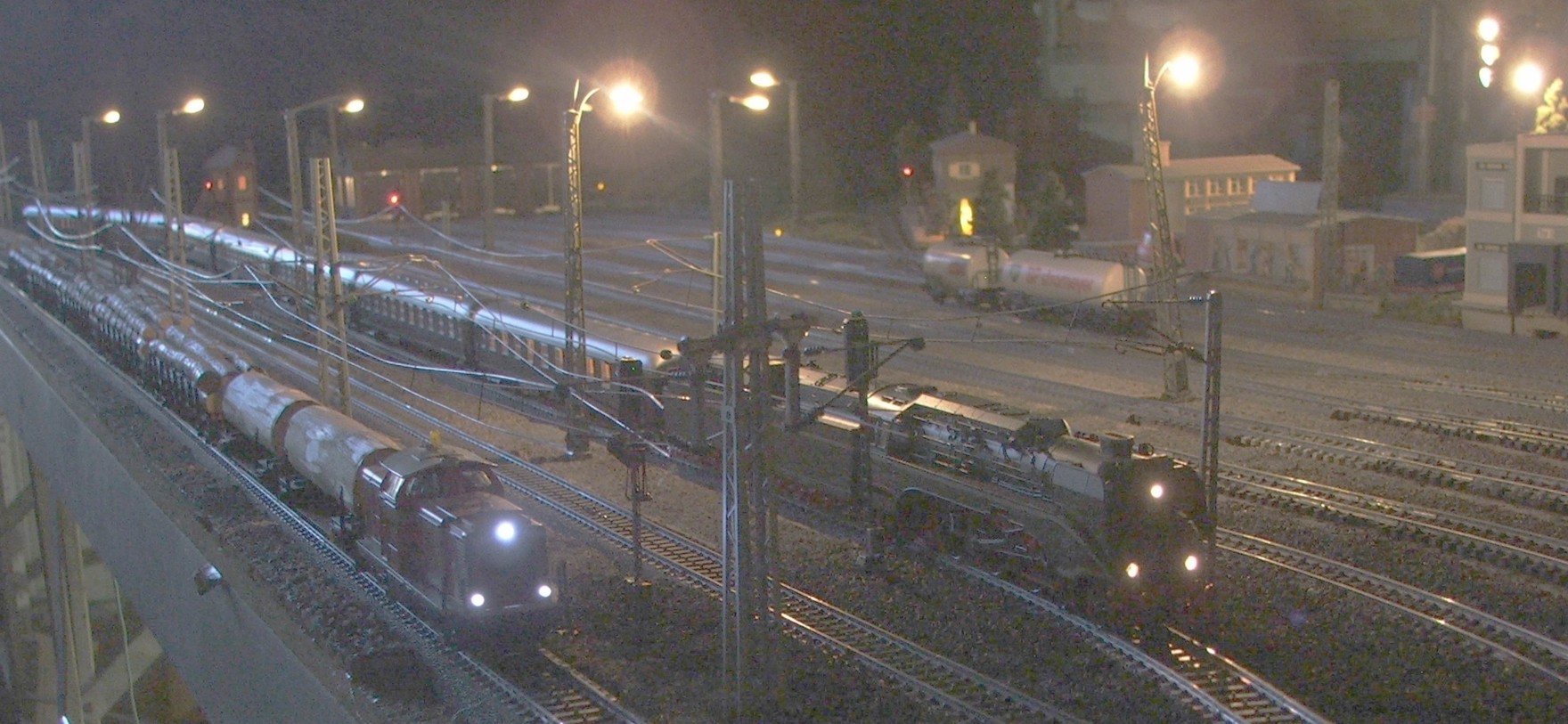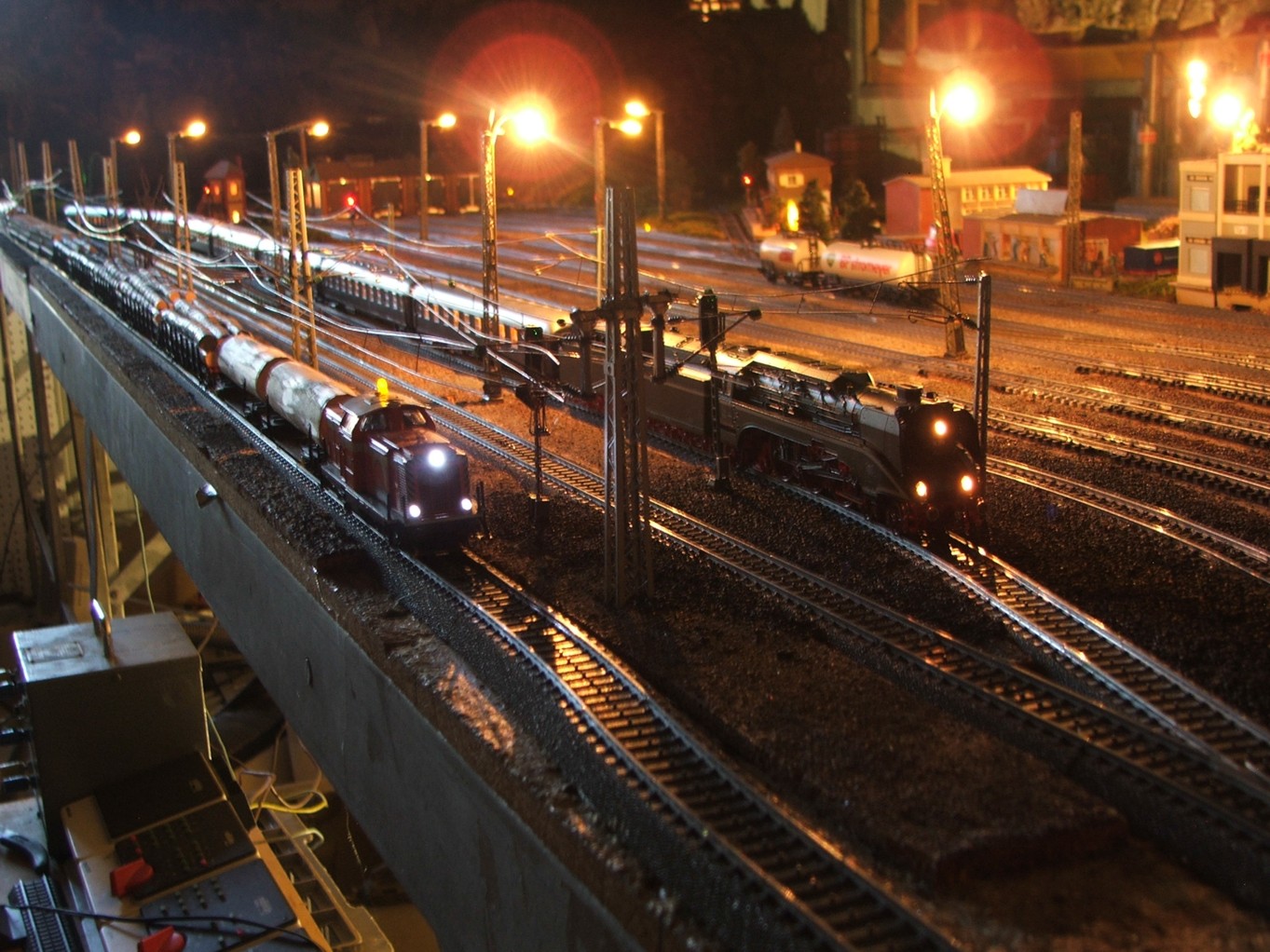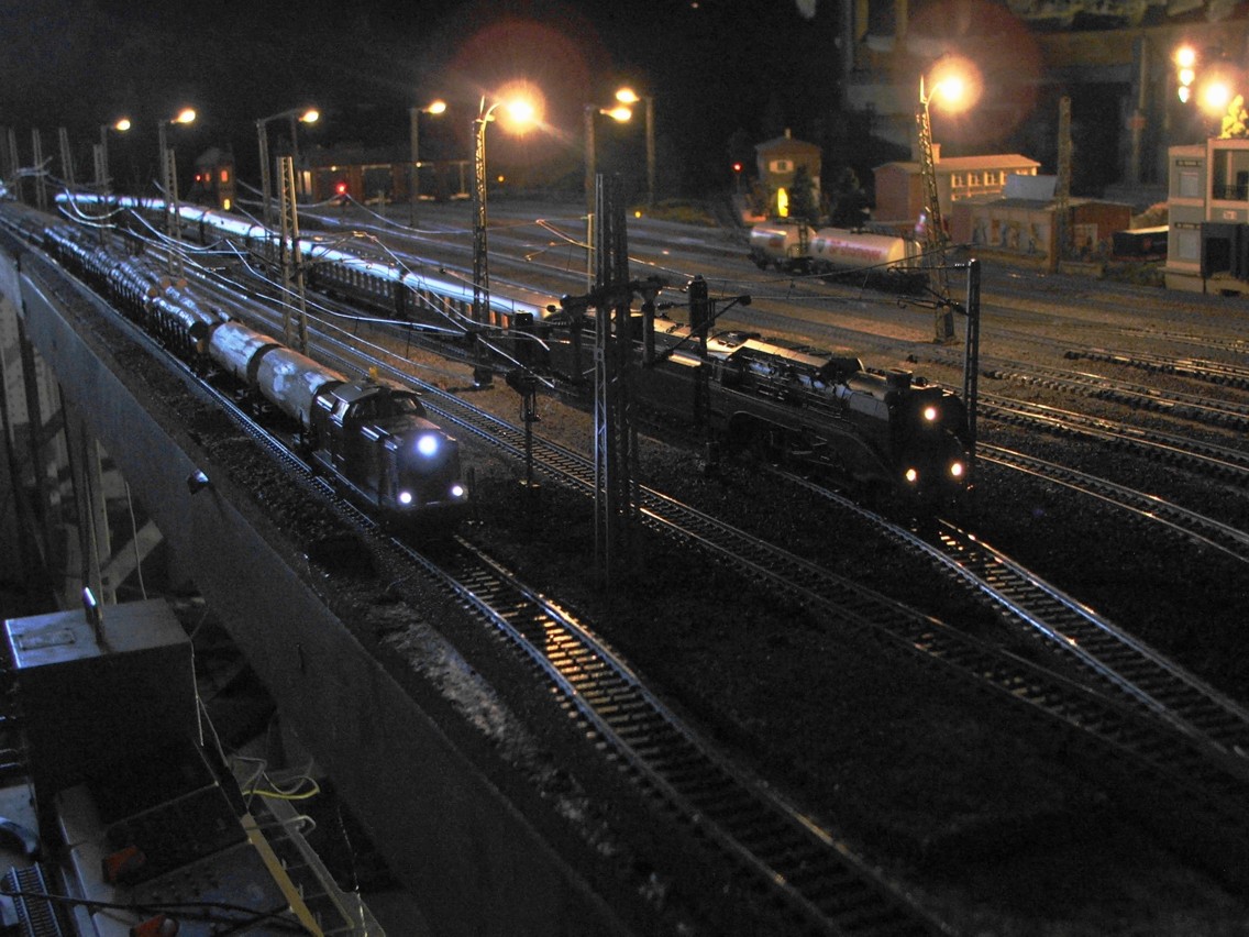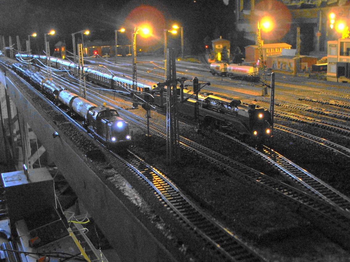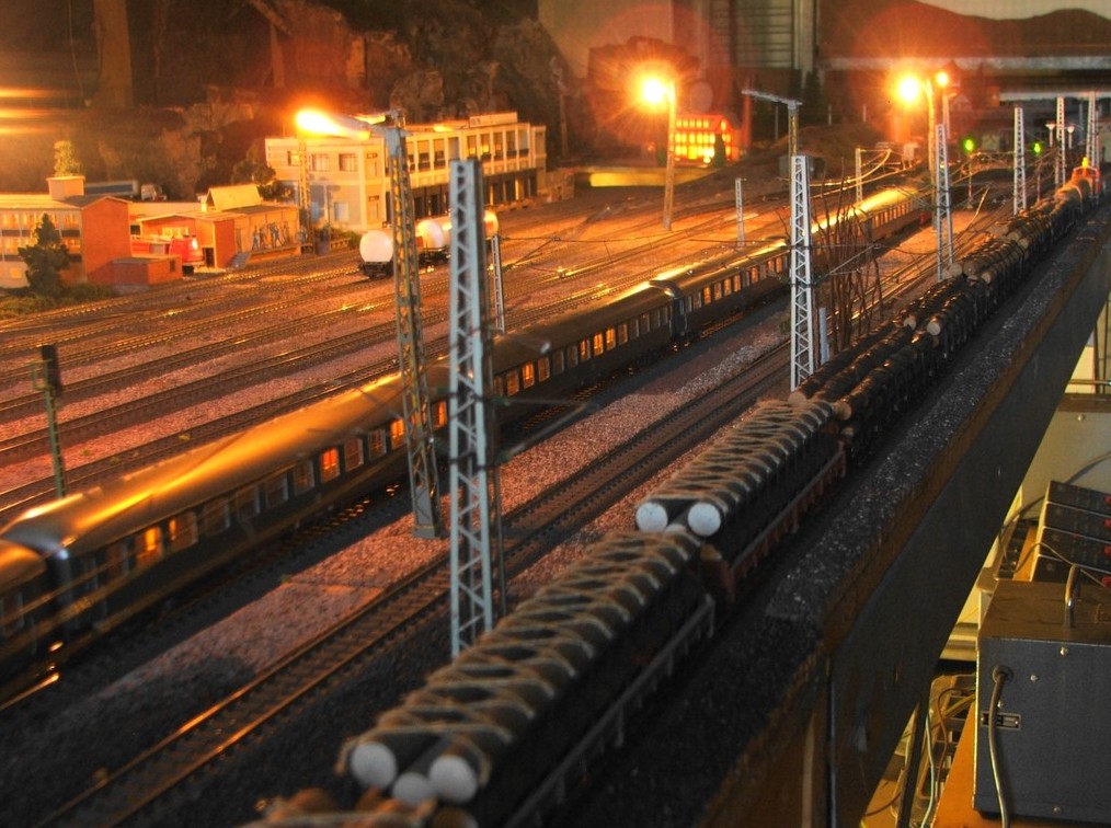 Die Modellbahn bei Nacht