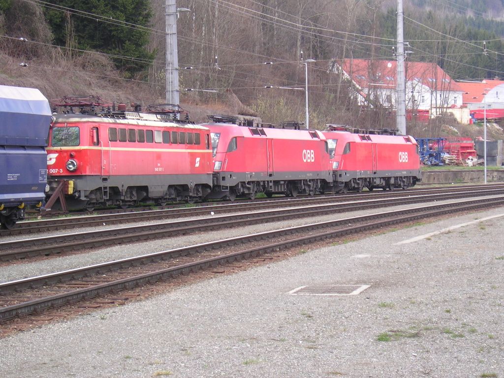 trotz aller Unkenrufe möchte ich Euch doch noch ein letztes Bild der 1042 007 am Tage Ihrer Abstellung mit Trafoschaden im Hauptbahnhof von Leoben zeigen; und dabei auch ein Frage an die Kundigen: Was Soll die Kennung bei der Wagennummer dieses dt. Wagens (D-ÖBB xxxxx)??