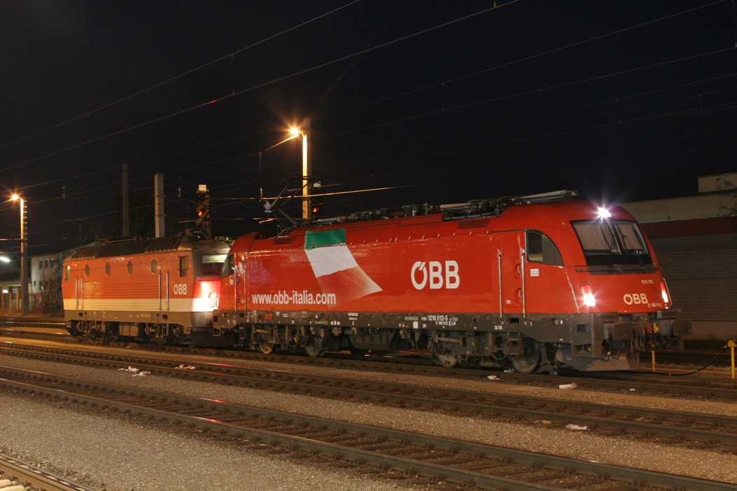 08.03.2010 ÖBB 1216 012 mit oebb-italia.com werbung + ÖBB 1144 254 abgestellt in Klagenfurt.jpg