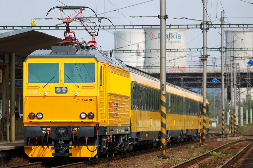 Dieses Foto des neuen tschechischen Privatzuges "Regio Jet", soll beweisen, dass man nicht nur in Ungarn und Balkan, sondern auch in Tschechien, ein Interesse an gebrauchten ÖBB-Fahrzeugen hätte,diese "Regio Jet"-Züge bestehen aus Skoda-E-...Lo...k , diese Skoda-E-Loks wurden 1994 wegen Geldmangel, weder von der CD noch von der ZSSR übernohmen und wurden fortan von der Italenischen Privatbahn "Ferrovia Milano Nord" übernohmen, wegen der Beschaffung von modernen Niederderflurtriebwagen für "Ferrovia Milano Nord", aber auch weil diese "Ferrovia Milano Nord" selbst von der Staatsbahn "Trenitalia" übernmhmen wurde, wurden diese 9 Skoda-E-Loks nun wieder nach Tschechien zurück verkauft aber nicht an die CD sondern an die tschechische Privatbahnfirma "Regio Jet" welche sich auch noch gebrauchte Eurofimawagen von den ÖBB kaufte und nun mit privaten Zügen, zwischen Prag /Praha und Ostrau / Ostrava, den CD konkurenz machte und eine der beiden ex Ital. Skoda-E-Lok und ex ÖBB-Eurofimawagen sind nun in Geld lackiert, aber für die Thayatalbahn wären, neben den moderneren tschechischen Dieseltriebwagen der Reihen 814, 840 oder 842, aber auch der Einsatz von gebrauchten ÖBB- Dieseltriebwagen der Reihe 5047, wie bei der Raaberbahn /GySEV in Ungarn vorstellbar, von welchen ich hier vor einer Woche schon einen Link mit Foto postete aber hier ist dieser einmalmal drauf http://bahnbilder.warumdenn.net/13958.htm!