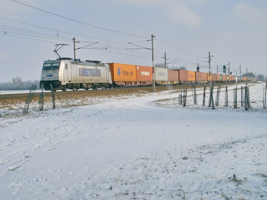 So nun ist der Winter voll Eingezogen ,auf der Nordbahn kommt eine METRANS mit einen Kistenzug daher gezogen.