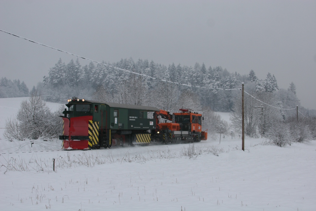 Heute war ein Klimaschneepflug auf der Strecke Klagenfurt - Weizelsdorf - Rosenbach unterwegs.Leider hat es im Rosental nicht soviel geschneit,der Schnee ist dort unter Schienen oberkante.Deswegen war der Pflug auch nicht in voller Pracht zusehen.