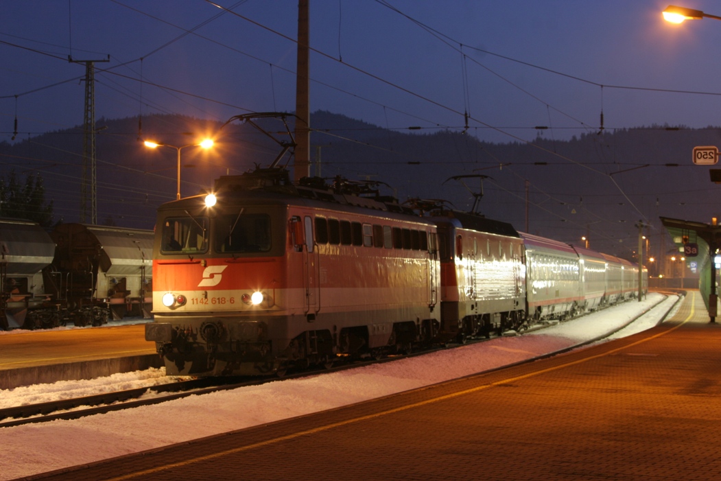 - 13.02.2010 ÖBB 1142 618 + ÖBB 1144 097 mit ÖBB EC 530 in St.Veit a.d.Glan.jpg