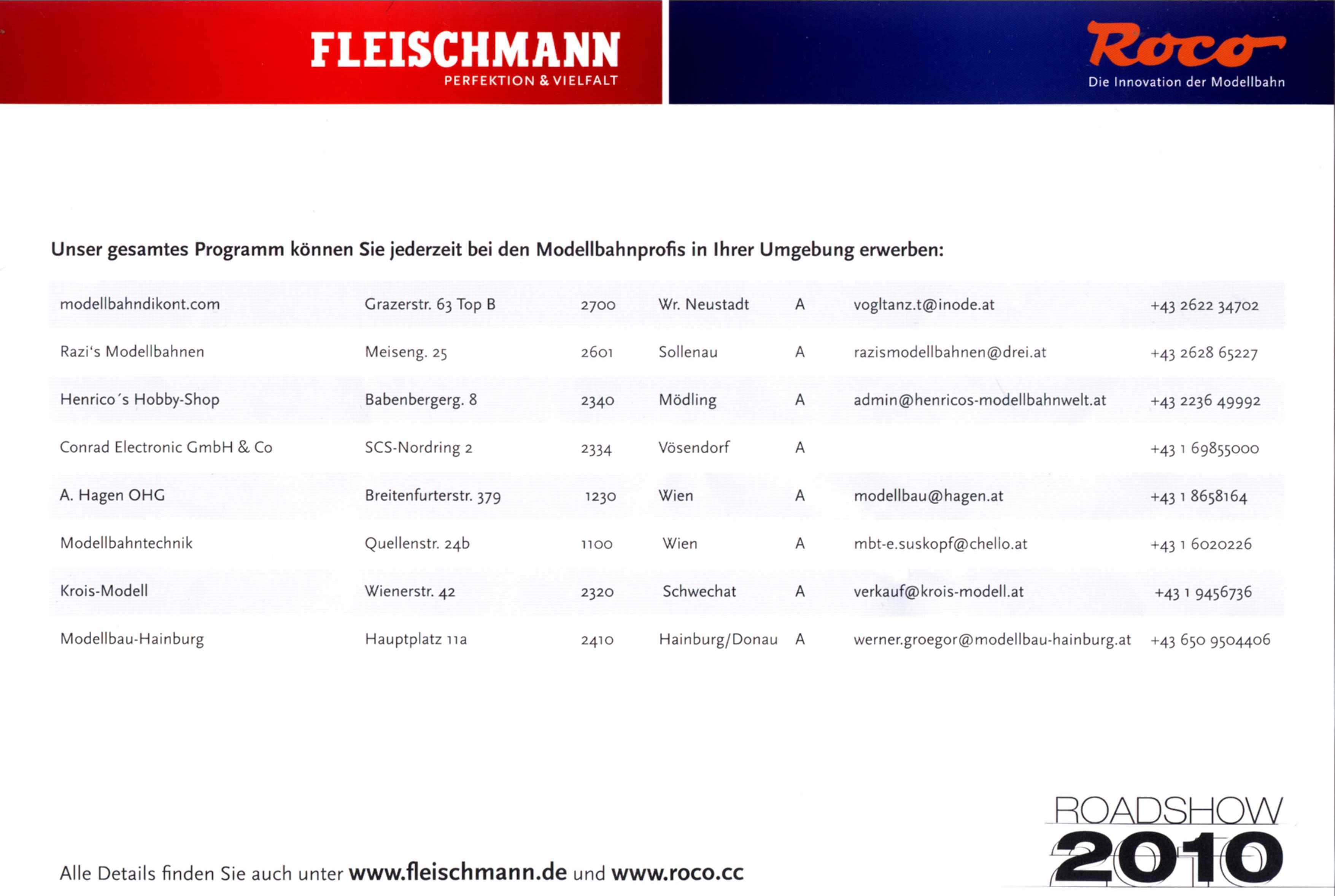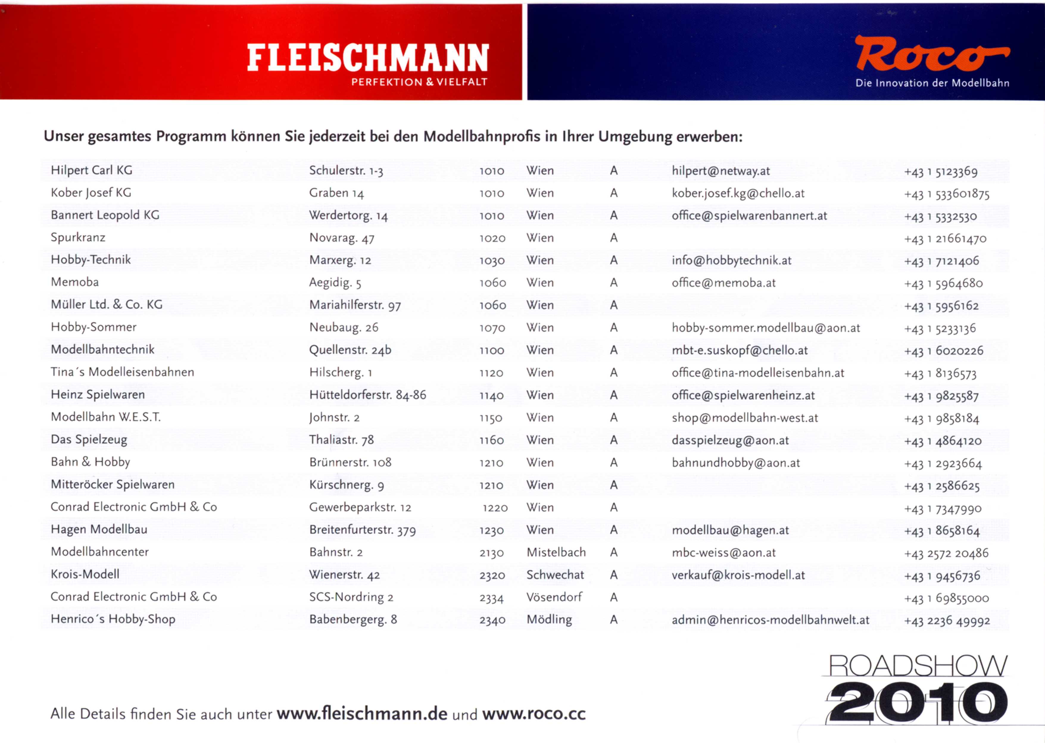 Fleischmann / Roco Händlerverzeichnis 2010 (NÖ/W) Roadshow