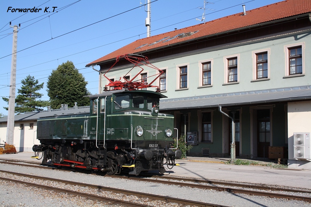 Am Pfingstwochenende fanden im Eisenbahnmuseum Strasshof die sogenannten E-Lok Tage statt: Dabei wurden jene in der Sammlung befindlichen Elektrotriebfahrzeuge ungeachtet ihres äusserlichen Erscheinungsbildes der breiten Öffentlichkeit präsentiert. Ein bei solchen Veranstaltungen obligater Zubringerzug aus Wien durfte auch diesmal keinesfalls fehlen und wurde mit der seit langer Zeit nicht mehr eingesetzten 1062.07 bespannt.