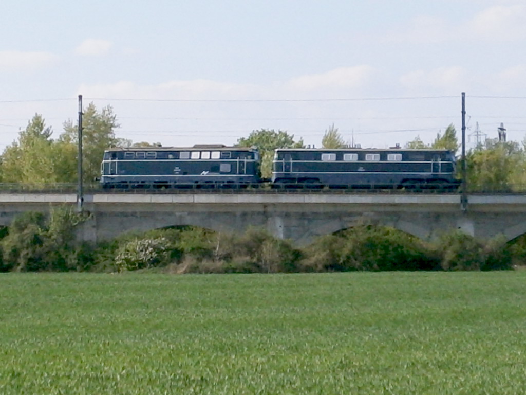 Zwei Grüne 2043 53 u 2050 04 auf der fahrt nach Etsdorf-Strass auf der Hochbahn