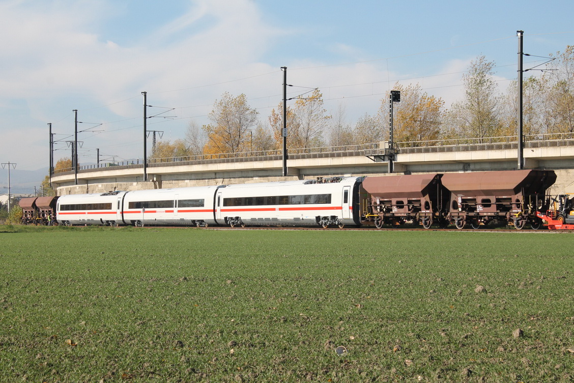 Um eine Ablöse für die bereits älteren Triebwagengarnituren der Baureihe 401 (ICE 1) sowie der lokbespannten Intercity Züge zu bewirken, entschied sich die Deutsche Bahn für jenen von den Herstellern Siemens in Krefeld und Bombardier in Hennigsdorf gebauten Elektrotriebwagen mit der Bezeichnung „ICx“. Die ersten, ab 2017 einzusetzenden Fahrzeuge durchlaufen aktuell ihre Inbetriebsetzung: So befinden sich seit 13.Mai 2015 zwei Zwischenwagen einer solchen Garnitur in Wien, wo sie Testversuchen im Klima- Windkanal der Railtec Arsenal unterzogen werden. Wie in Erfahrung zu bringen war, wird diese Komposition noch um einen Endwagen ergänzt. Die Belegaufnahme zeigt die Erfahrzeuge nach deren Ankunft am Floridsdorfer Frachtenbahnhof.