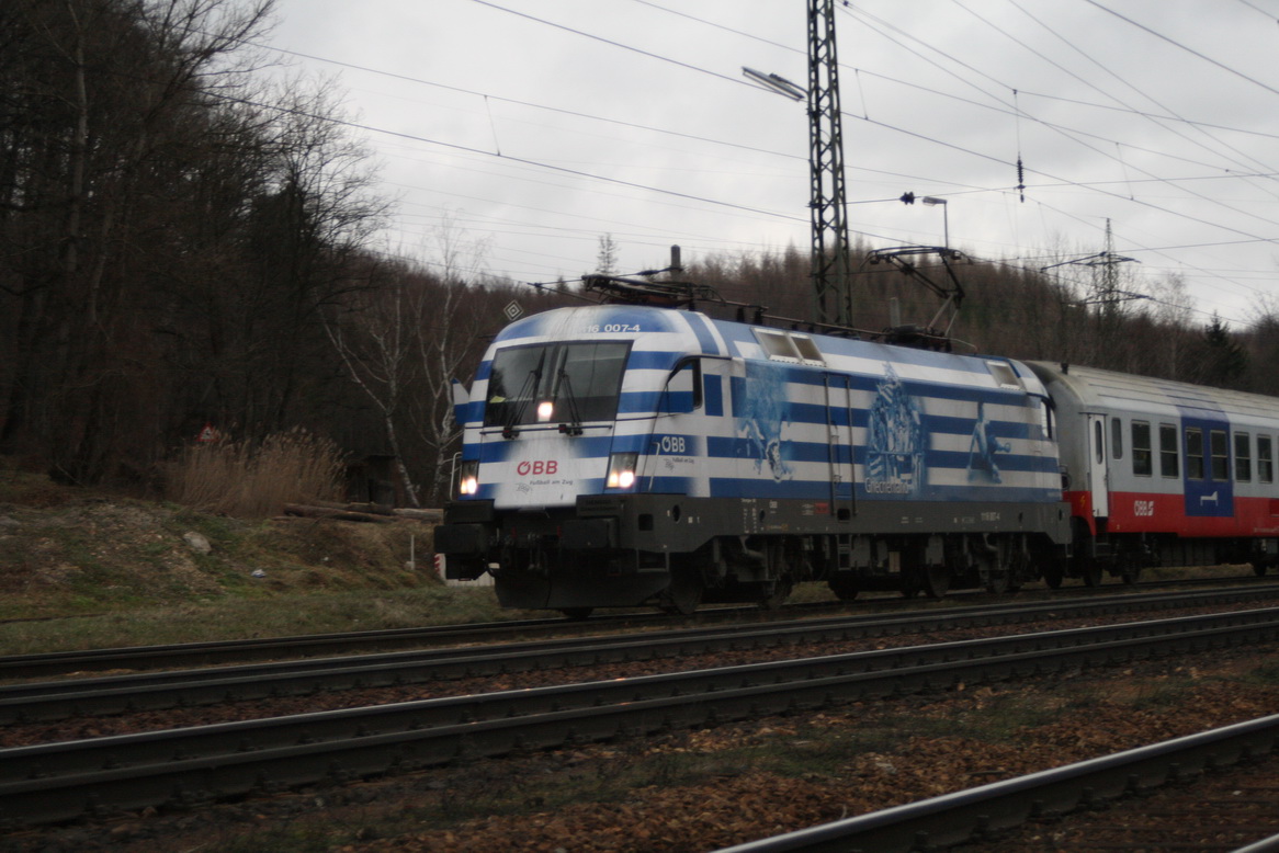 Anbei die von einem unserer Leser erhaltene Zusendung welche ebenso 1116 007 vor einem Rola Zug zeigt. Der Ordnung halber sei erwähnt wonach der Zug tatsächlich nur drei (!) Lkw's beförderte und deshalb beim ersten Anblick etwas "abgeschnitten" wirkt.