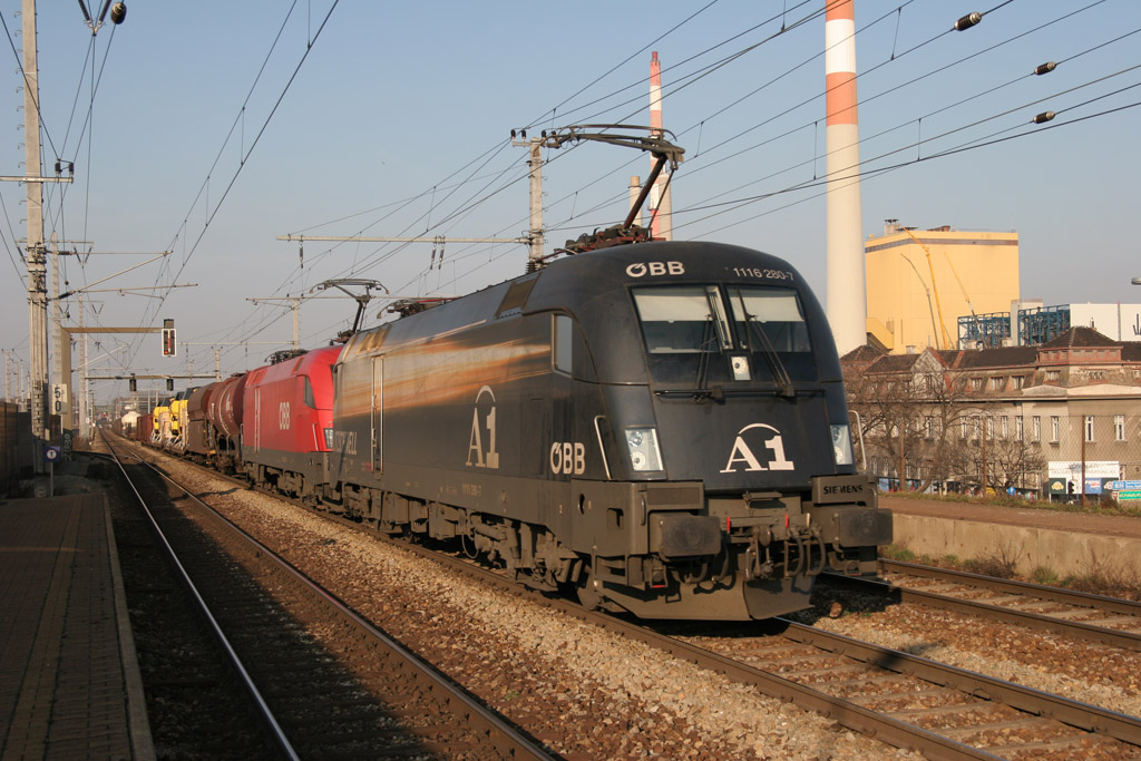2. Sichtung A1 1116.280+1116.211 mit Güterzug (leider keine Nummer vorhanden) in der Haidestraße