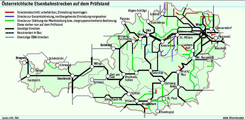 Wie schon richtig im Artikel geschrieben, stehen auch einige Bahnstrecken auf den Prüfstand, die erst unlängst teuer modernisiert wurden (Gutensteiner Bahn) bzw. grade modernisiert werden (Leobersdorf - Weissenbach/Neuhaus).